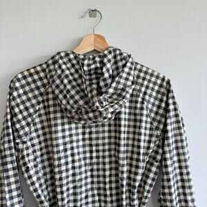 Columbia Plaid Belted Hoodie Waterproof Trench Raincoat Black Ivory M