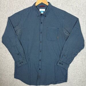 Columbia Plaid Button Down Long Sleeve Cotton Shirt-Blue-Men Size Large Tall