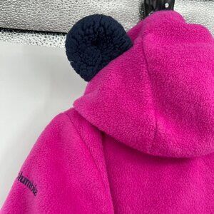 Adorable Columbia Polar Fleece Snowsuit for baby girls aged 6 to 12 months. Features charming bear ears, perfect for keeping your little one warm and cozy during cold winter months.