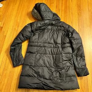 Columbia Puffer Jacket Womens Medium Black Hooded Long Down Coat **