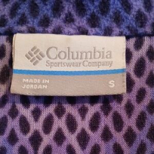 Columbia pullover with a striking purple geometric pattern. Ideal for casual outings.