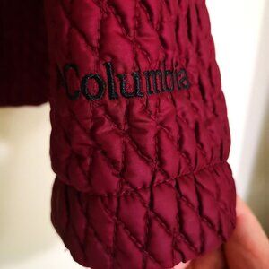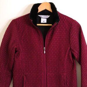 Columbia Quilted Stretchy Faux Fur Stand-Up Collar Zip Up Jacket Burgundy Sz S