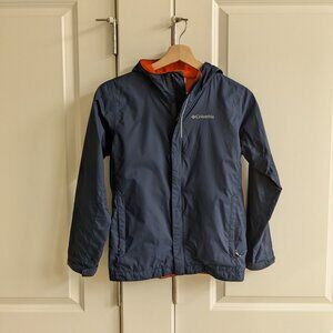 Columbia Rain Jacket Kids M 10/12 Navy Blue Omni Tech Packable Windbreaker Coat