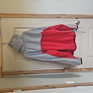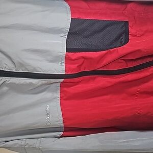 Columbia Rain Jacket missing size tag. Size Medium red, gray & black