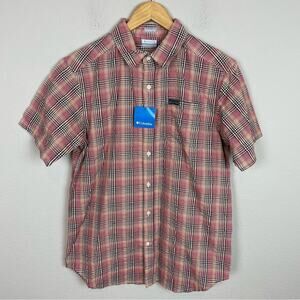 Columbia Red Brown Tan Short Sleeve Plaid Shirt NWT Small