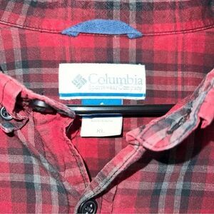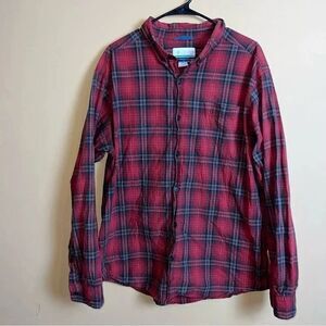 Columbia Red & Gray Plaid Long Sleeve Button Down Flannel Shirt Size XL