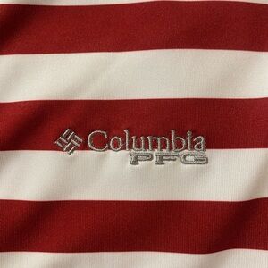 Columbia Red and White Striped Polo Shirt - Casual Knit Style