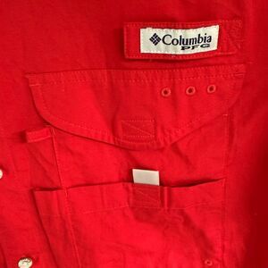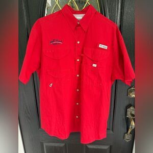 Columbia Red PFG Short-Sleeve with Jekyll Island Logo. Size M. Great Condition
