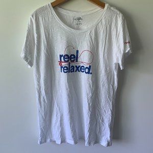Color / Pattern: white, blue, graphic t-shirt, fishing, sporting