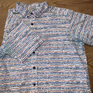 Columbia Regular Fit Large Mens White Colorful Stripped Button Up Shirt