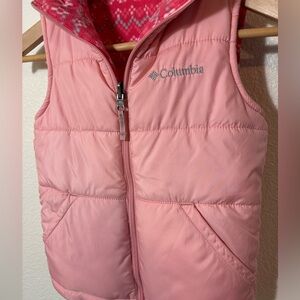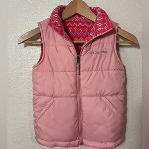 Columbia Reversible Pink Insulated Puffer Vest Front Zip Girl's Size 6/7 |