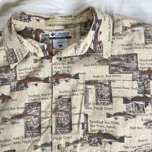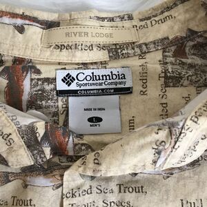 Columbia River Lodge Button Front Fish Fishing Shirt Mens Size Large Vacation