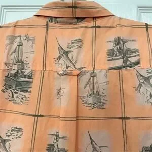 Columbia River Lodge Men's XL Peach Fish Print Button-Up Shirt