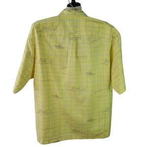 Columbia River Lodge Pale Yellow Gray Ocean Fish Short Sleeve Button Front Shirt L
