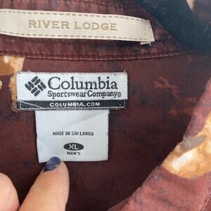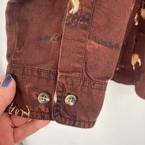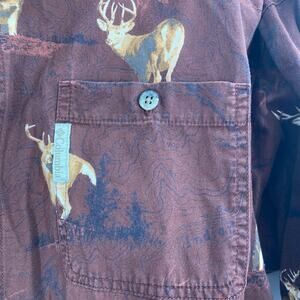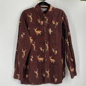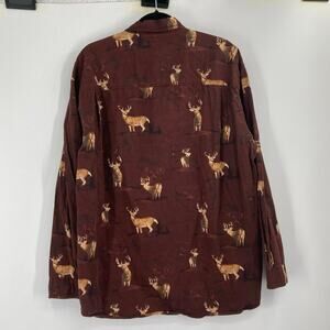 Columbia River Lodge Whitetail Deer Print Rust Red Button Up Cotton Shirt XL