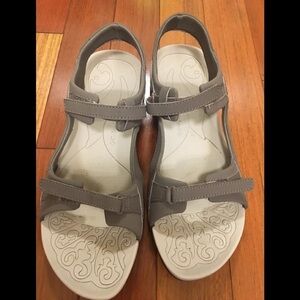 In good Preowned condition, size 11, adjustable straps, hook and loop closure, Grey, Comfortable and lightweight, no trades