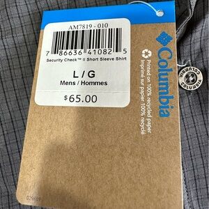 Columbia Security Check II Omni Shade UPF Button Down Shirt Gray Men's Lg NEW