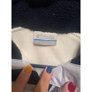 Columbia Sherpa Cropped Fleece Pullover Navy Blue White Women’s Size Small
