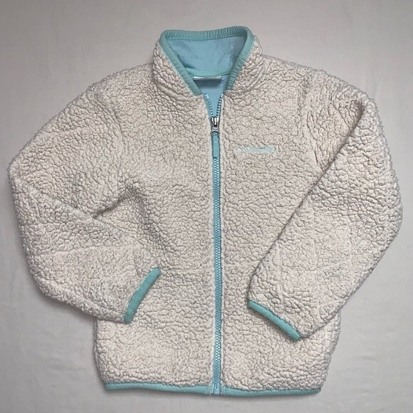 Columbia Sherpa Girl’s 4-5 Off White Light Blue Full Zip Fleece Jacket