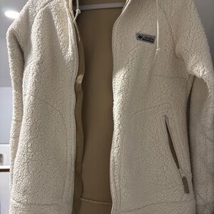 Arms have some stains due to wear shown in photos. Looks worse in the photos. All it needs is a good stain remover and should do the job!