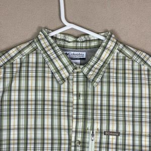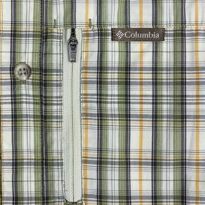 Columbia Shirt Adult 2XL Green/White Plaid Outdoor Short Sleeve Pocket Mens