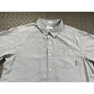 Columbia Shirt Adult Large Gray Button Up Pocket Logo Short Sleeve Outdoor Men's