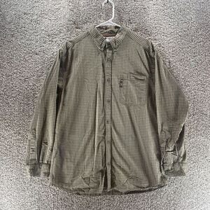 Columbia Shirt Adult Large Gren Tan Plaid Long Sleeve Button Up Hiking Mens Logo