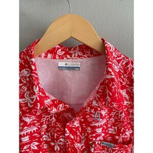 Columbia Shirt Button Down Sun Protection Camp Red Tropical Size Medium