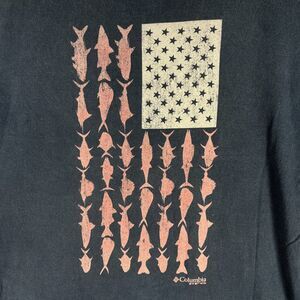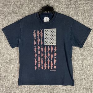 Columbia Shirt Large Mens PFG Fishing USA Flag Saltwater Short-Sleeve Blue