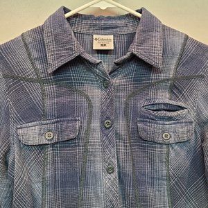 Columbia Shirt Long Sleeve Button Down Flannel Blue Plaid Womens Small