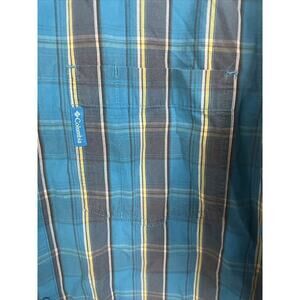 Elevate your casual wardrobe with this stylish blue button-down dress shirt by Columbia. Perfect for any occasion, this shirt features a plaid pattern with a colorful theme, long sleeves, and a collared neckline with a button-down closure. Made from a comfortable cotton blend material, this shirt is designed for a regular fit and is available in size L with a chest size of 46 inches.
