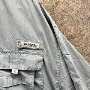 Columbia Shirt Men Large Gray Button Down PFG Fishing Omni Outdoors Vented Nylon