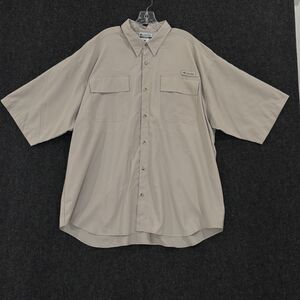 Columbia Shirt Mens 2XL Tan Short Sleeve Vented Fishing Outdoor Lightweight Nylon