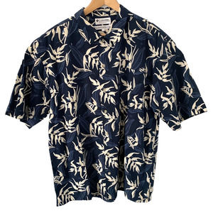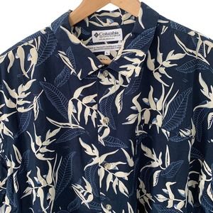 Columbia Shirt Mens L Navy Blue Floral Print Short Sleeve Button Up