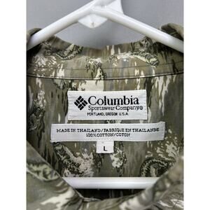 Columbia Shirt Mens Large Green Fish Pattern Button Up Short Sleeve Outdoors