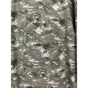 Features an allover green and white fish pattern, perfect for fishing or outdoors