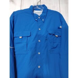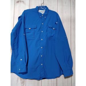 Columbia Shirt Men's Large Omni-Shade Fishing Gear Button Front Blue Long Sleeve