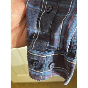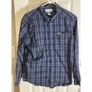 This Columbia men's large plaid long sleeve button-up shirt is a classic and versatile addition to any wardrobe. Made of lightweight cotton fabric with a woven texture, it is perfect for casual occasions in all seasons. The shirt features a collared neckline with a button-down style, a regular fit, and a breathable design for comfort. With its blue color and outdoor theme, it is a timeless piece that can be styled for everyday wear or dressed up for more formal events.