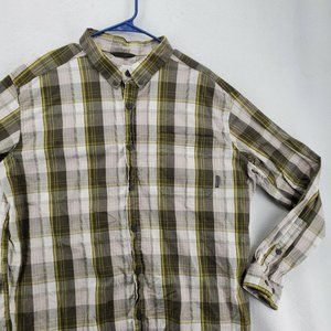 Columbia Shirt Men's Long Sleeve Button Up Collared Green White Yellow Plaid XL
