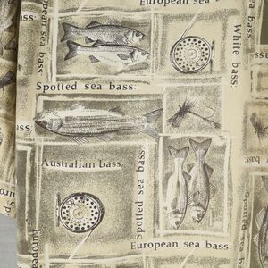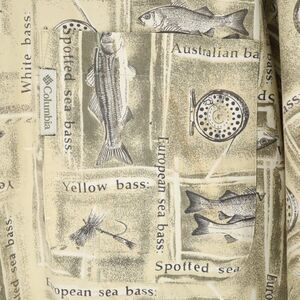 Columbia Shirt Men's Medium Beige Yellow Cotton Novelty Fishing Print Vintage Gorpcore