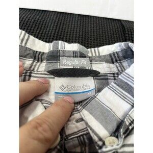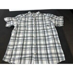 Columbia Shirt Mens Size Medium Gray Plaid Button Up Short Sleeve *