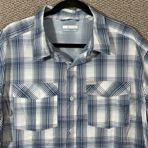 Columbia Shirt Mens Size XL Blue Plaid Vented Button Up Short Sleeves Casual Outdoor