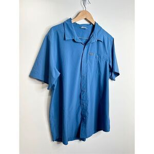 Columbia Shirt Mens Size Large Blue Button Front Short Sleeve