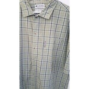 Columbia Shirt Mens XL Button Front Short Sleeve Green Plaid