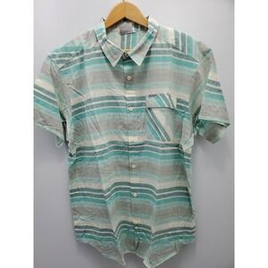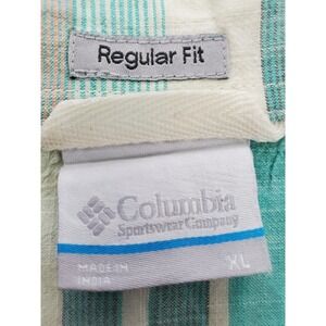 Columbia Shirt Mens XL Green Striped Short Sleeve Flap Pocket Regular Fit