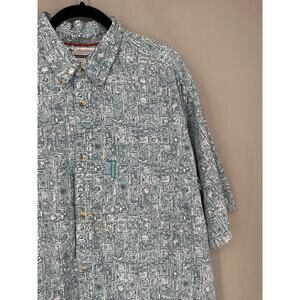 Columbia Shirt Mens XLT Blue Hawaiian Fish Print Summer Short Sleeve Cotton