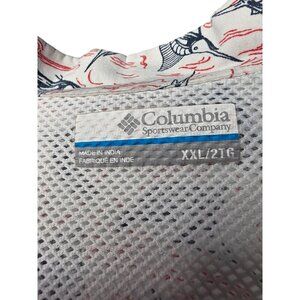 Columbia Shirt Mens XXL 2XL White Geometric PFG Fish Fishing Button Up Collared