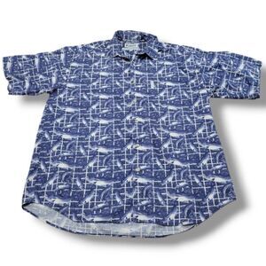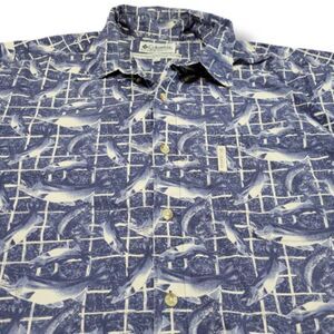 Columbia Shirt Size XL Hawaiian Style Shirt Button Up Shirt Fish All Over Print