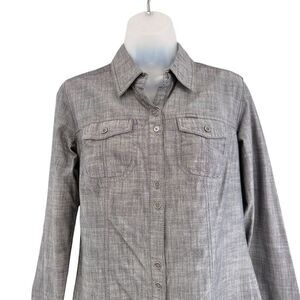 Columbia Shirt Women Small Chambray Double Breast Pockets Button Down Gray