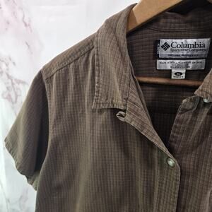 Columbia Shirt Womens XL Brown GRT Button Up Short Sleeve Loop Collar Vintage